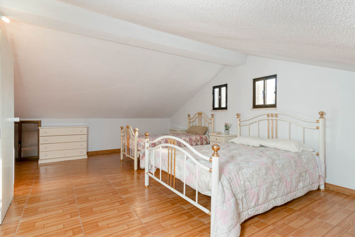 No exterior encontra-se uma Garagem, Cozinha e Casa de banho, ambos cobertos por um magnífico terraço, além de um espaço muito generoso destinado a jardim, diversão e lazer, zona de cultivo com poço